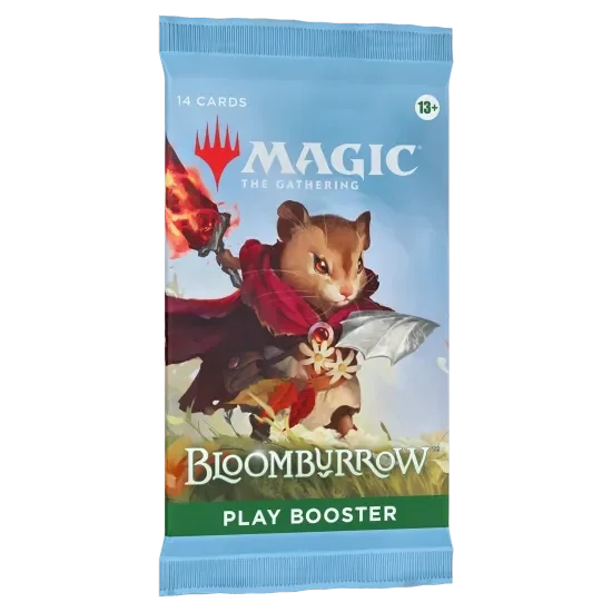 Een Bloomburrow Play Booster is een Magic: The Gathering-kaartverpakking met 14 kaarten, ontworpen voor zowel Limited Play als voor het verzamelen van kaarten. Elke booster bevat 1 tot 4 kaarten van Rarity Rare of hoger, 3 tot 5 uncommons, 6 tot 9 commons, 1 traditionele foil-kaart (van willekeurige zeldzaamheid), 1 Basic Land-kaart (die ook foil kan zijn), en 1 Art-kaart, Token of reclamekaart. De boosters kunnen ook speciale kaartbehandelingen zoals de Woodlands Frame of Borderless Field Notes Showcase kaarten bevatten.
